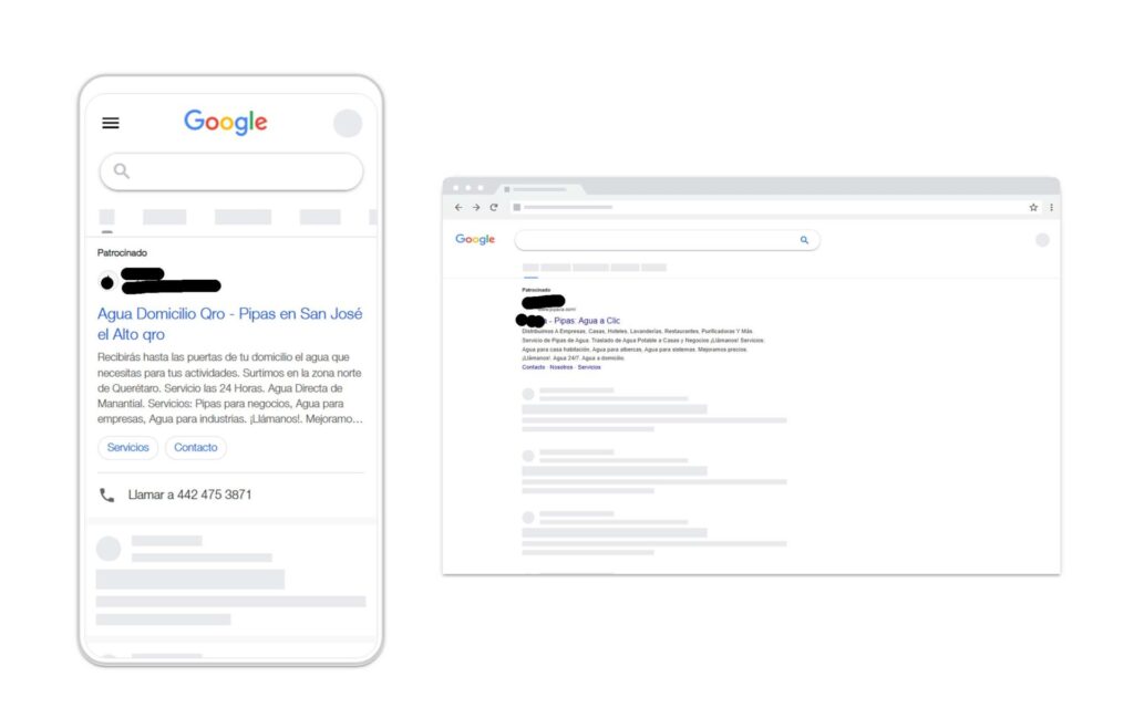 Proyecto de búsqueda de Google Ads para una empresa de reparto de agua (pipas de agua) con dos embudos basados en la intención: una campaña dirigida a solicitudes comerciales e industriales y otra centrada en la entrega a domicilio .